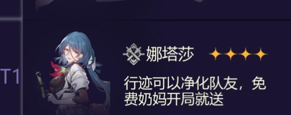 第二个五星奶,可以通过领域对我方进行加血,还能在我方血量到一定比例便回血,既可以帮助我方解除DEBUFF,又可以帮助敌方解除BUFF,属于是娜塔莎PRO了,根据攻击力提升奶量;