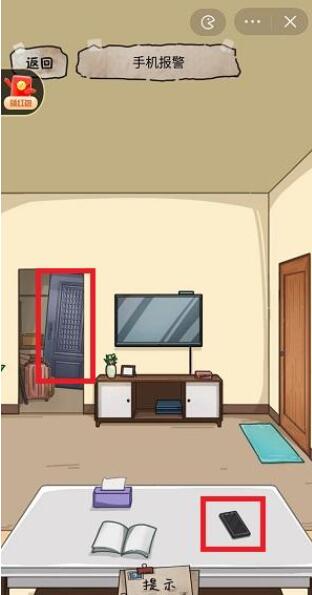 19、点击桌子上的手机,选择同时举报保安、女人、外卖小哥三人,点击“确定”;
