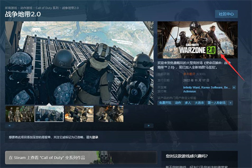 使命召唤战区2的官方名称为call of duty warzone 2.0,玩家们在steam中搜索call of duty,或是warzone都能在Steam的搜索栏当中找到游戏。而使命召唤战区2在steam上叫战争地带2.0,玩家搜索战争地带也可以找到。