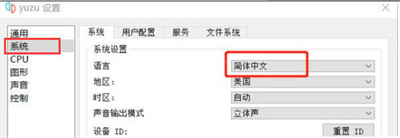 2、点击左侧的“系统”,右侧的语言改为“简体中文”