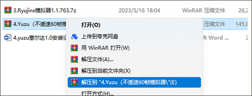 3.使用这里的Yuzu王国之泪60帧优化版模拟器,右键解压出来。