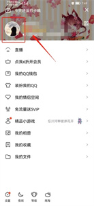 1、打开手机QQ,屏幕往右滑动,或者点击左上角自己的头像;