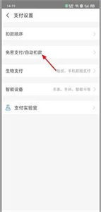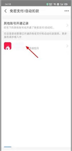 3、在支付设置界面,打开【免密支付/自动扣款】。