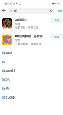 2、返回到我们应用市场的主界面,搜索“Gspace” ,我们直接点击安装,安装完成后,我们回到手机主界面,我们可以看到成功安装的gspace的图标。