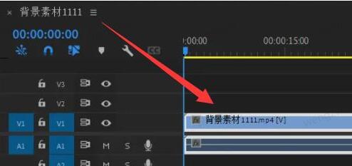 8、鼠标按住他,将它拖动到刚刚的时间轴里。