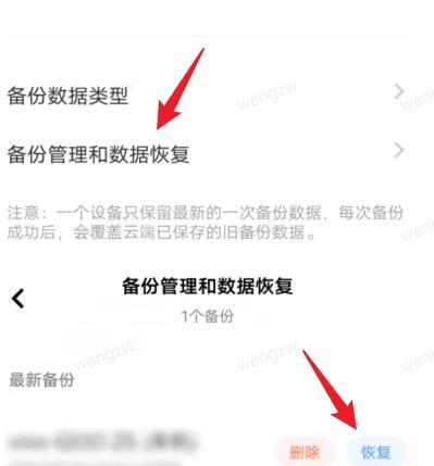 4、最后点击下方“恢复”选项就可以进行备份恢复。