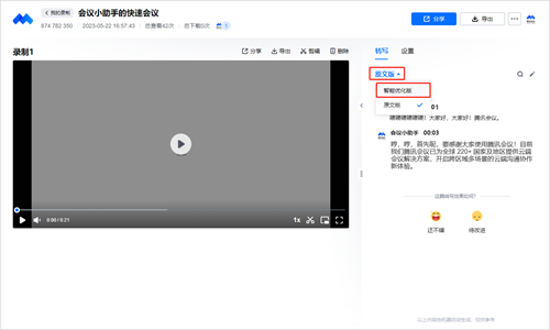 2.当前暂不支持在移动设备上导出录制转写内容。