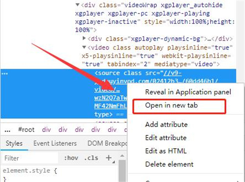 3、然后在右边找到视频对应的代码,为“source class src”后面的内容,