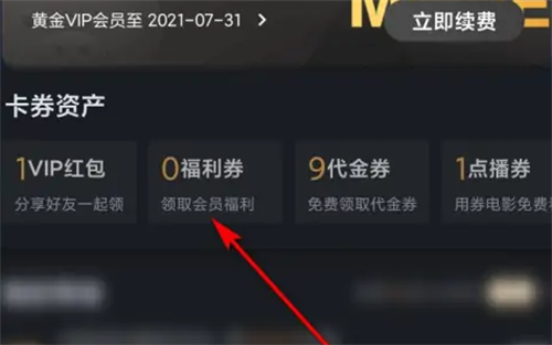 2、在卡券这里点击“福利券”